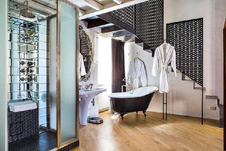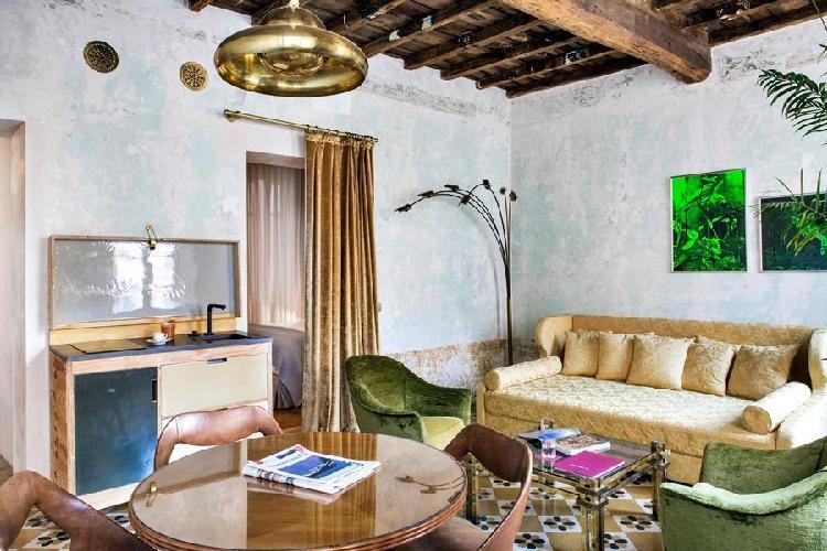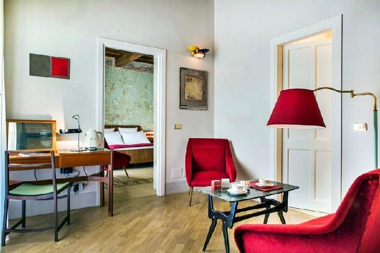 G-Rough est une véritable concentration de style et de design. C'est l'essence d'un nouveau projet conçu par Emanuele Garosci, responsable, avec Gabriele Salini de la naissance d'une structure qui vise à redéfinir le concept de l'hospitalité. L'objectif est d'assurer au public une expérience irremplaçable, à travers laquelle réussir à découvrir pleinement les caractéristiques de la ville, le sens le plus profond de la culture locale. Et la voie suivie est la même de PalazzinaG à Venise, âme sSur de ce hôtel de charme niché au cSur de la capitale. L'emplacement, près de la Piazza Navona, est vraiment unique en Italie, tandis que les atmosphères sont ceux princière d'un toile de fond intemporelle. Le non-conformisme est le mot d'ordre d'un hôtel avec des choix stylistiques originaux de designers célèbres et des marques historiques, en rendant hommage au génie d'artistes comme Ico Parisi, Gio Ponti, Silvio Cavatorta, Venini et Seguso. Le résultat est une réalité ancienne et moderne en même temps, en mesure d'accueillir l'hôte dans chambres et suites, toutes différentes les unes des autres, capables de donner vie à un authentique musée.