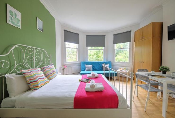 Studio à London qui possède 1 chambre(s) et Capacité pour 4 personnes. Logement de 20 m² accueillant et vaste. il est situé dans une zone tranquille et au centre de la ville.Elle dispose de fer à repasser, accès internet (wifi), sèche-cheveux, chauffage central, 1 Télévision.La cuisine américaine, de gaz, est équipée avec réfrigérateur, micro-ondes, congelateur, lave-linge, vaisselle/couvert, ustensiles/cuisine, grille pain et bouilloire. * Services inclus; - . - Accès à internet - Bed linen complete set on arrival - Chauffage - Hairdryer on request - Iron and iron board on request - Ménage fin de séjour - Serviettes * Services non inclus (consulter le prix et la disponibilité); - Animaux de compagnie : 1.71 EUR : 1,71 ¬ / jour - Arrivée en dehors des heures d'ouverture : 22.77 EUR : 22,83 ¬ /réservation - Bed linen set replacement for all beds/sofabeds) : 11.39 EUR : 11,42 ¬ /personne - Extra cleaning : 22.77 EUR : 22,83 ¬ /réservation - Special occasion pack 3 : 34.16 EUR : 34,25 ¬ /réservation